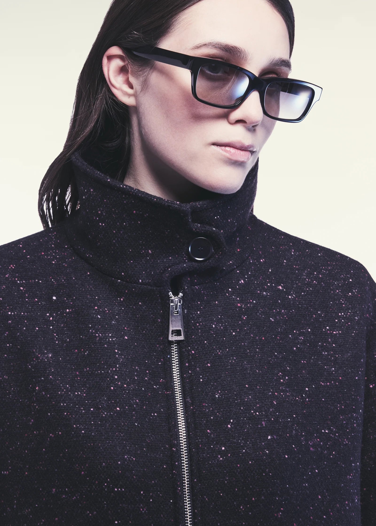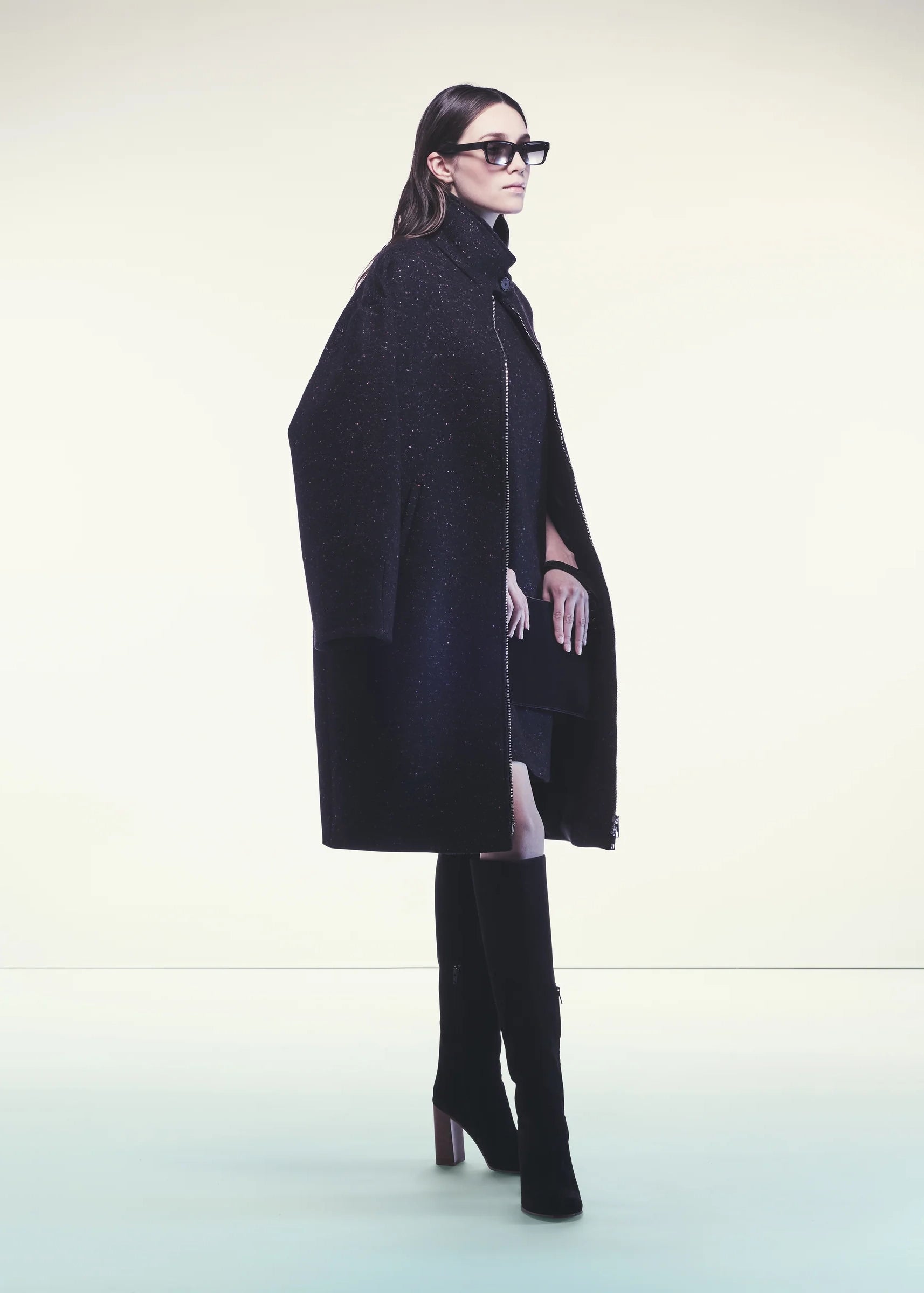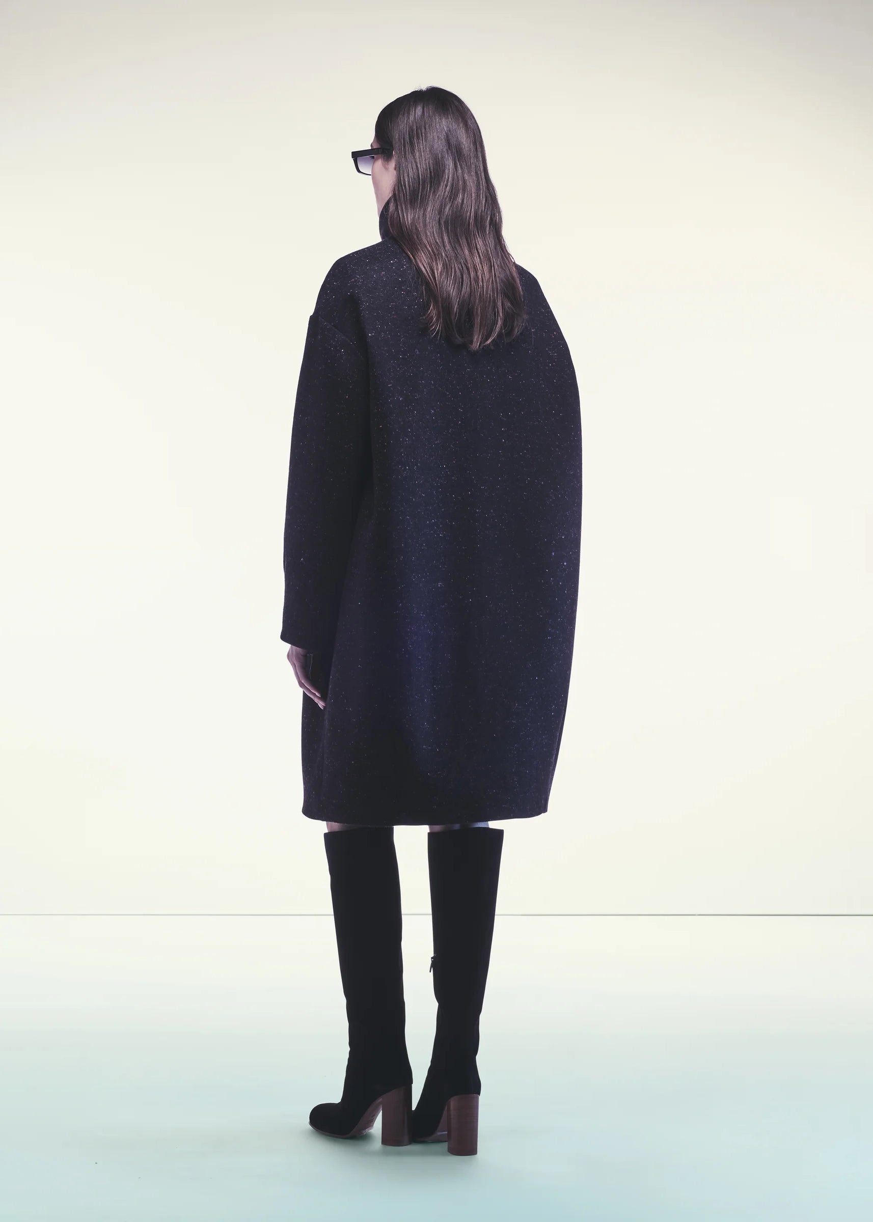 CAPPOTTO IN PANNO CASHMERE BOTTONATO. LINEA AMPIA, COLLO DOLCEVITA CON BOTTONI, ZIP CENTRALE, MANICHE AMPIE, LUNGHEZZA TRE QUARTI. TASCHE LATERALI A FESSURA INVISIBILI.