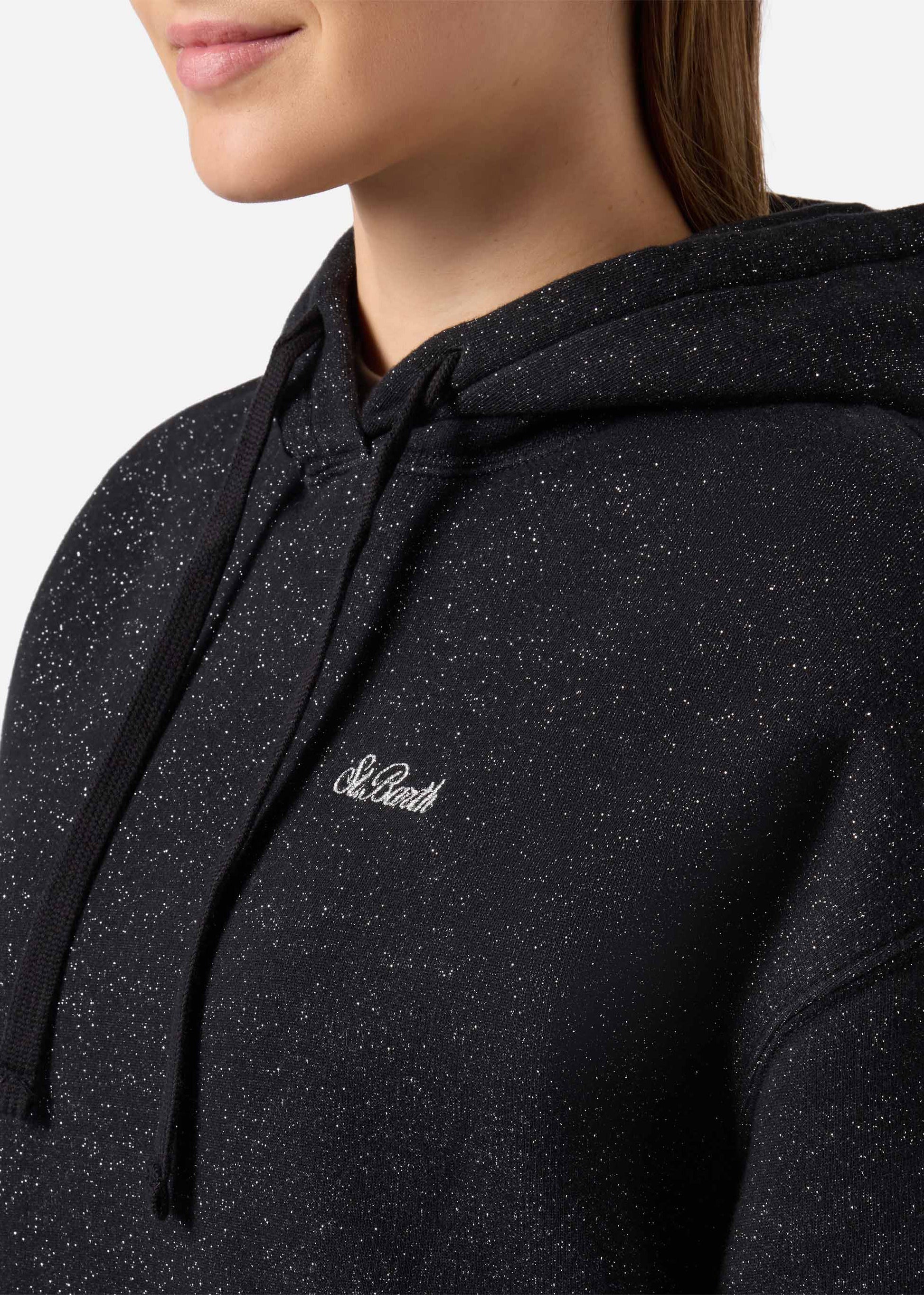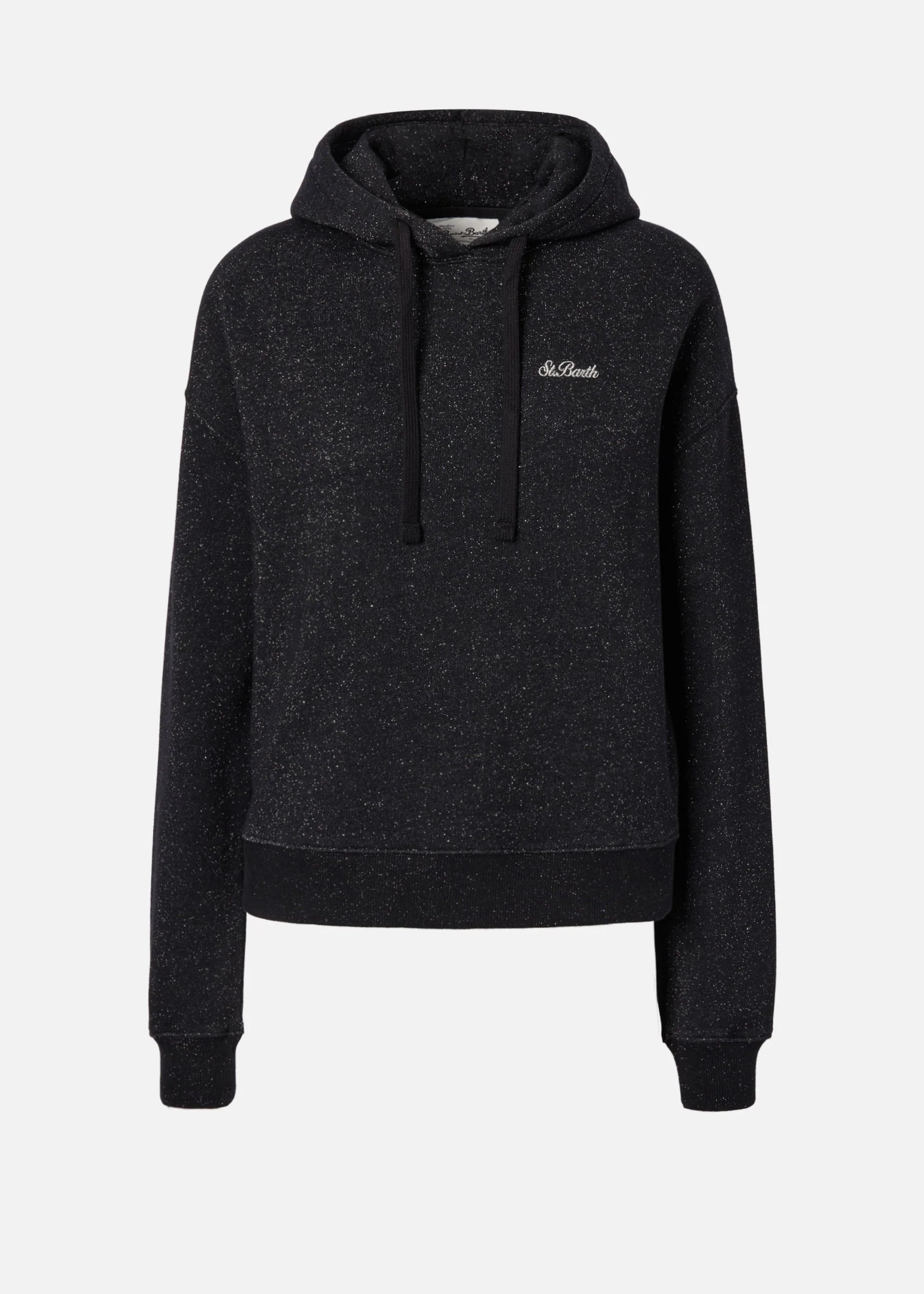 FELPA MINDY IN MISTO COTONE E LUREX NERO CON CAPPUCCIO - MIND0007 / 00407I