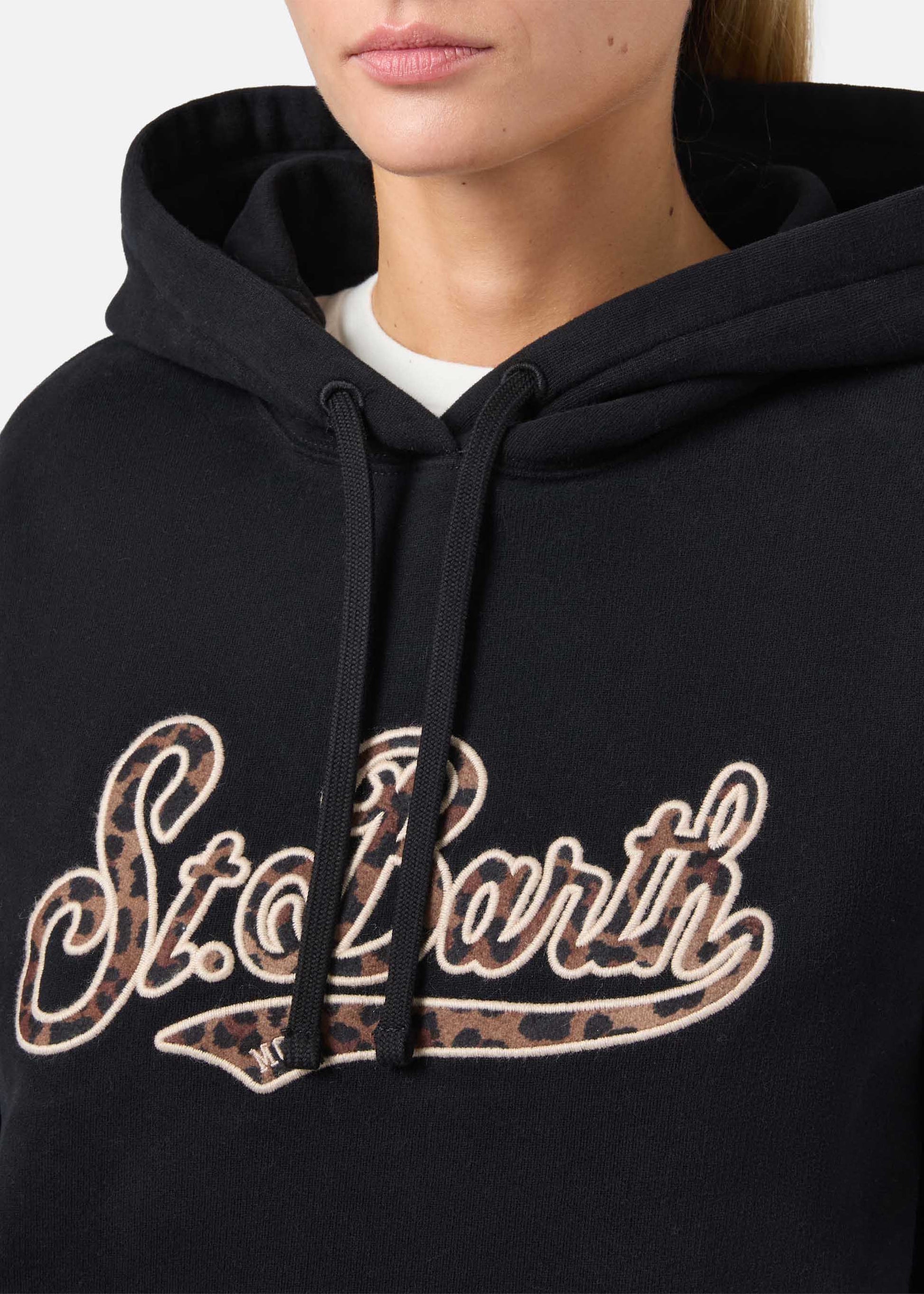 FELPA VIRGINIA IN COTONE NERO CON RICAMO ANIMALIER St. Barth - VRG0001 / 01070I