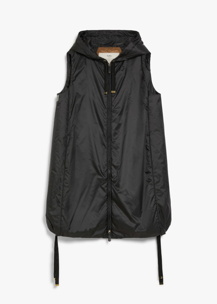 Gilet midi con cappuccio e bordo a coulisse.