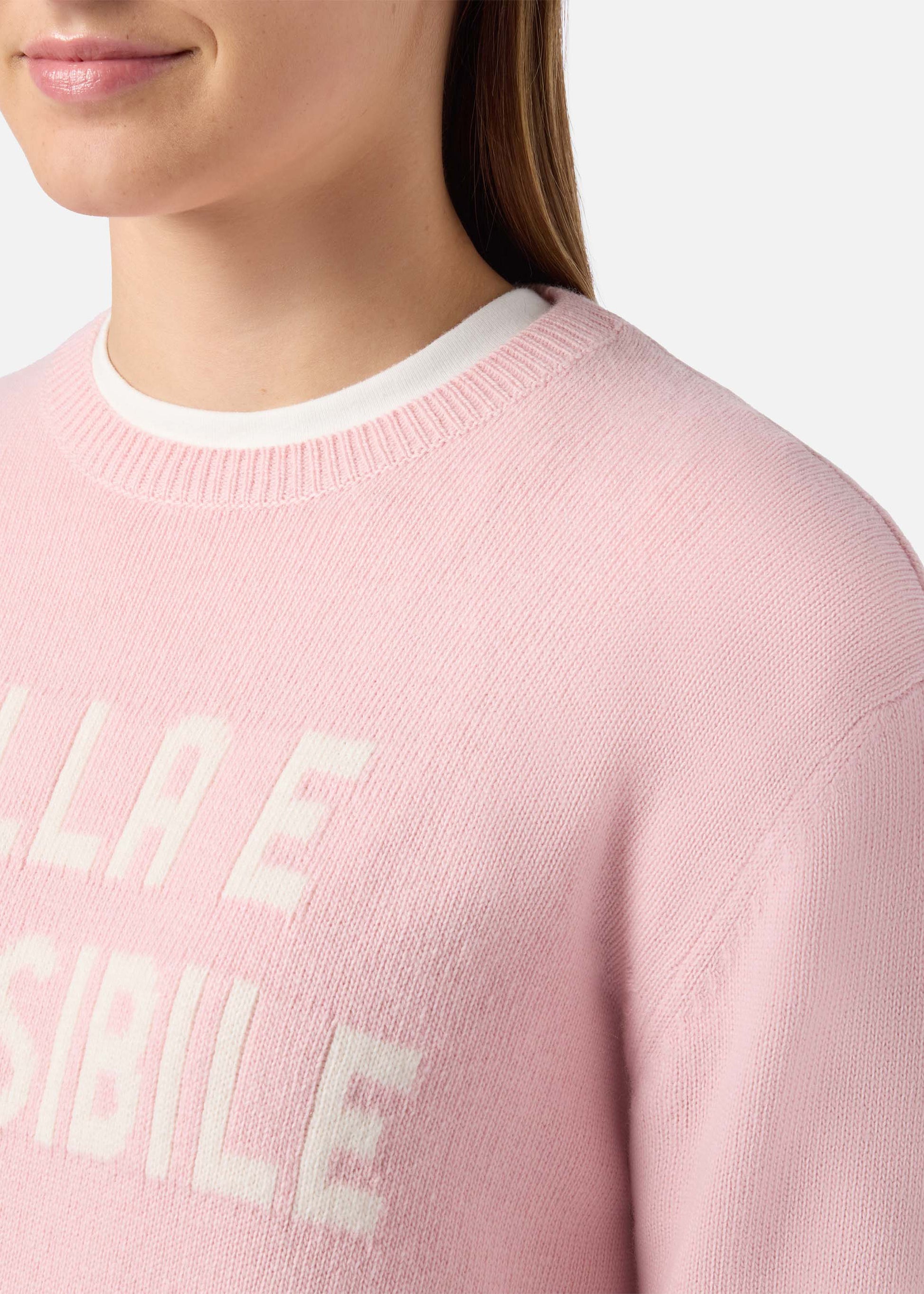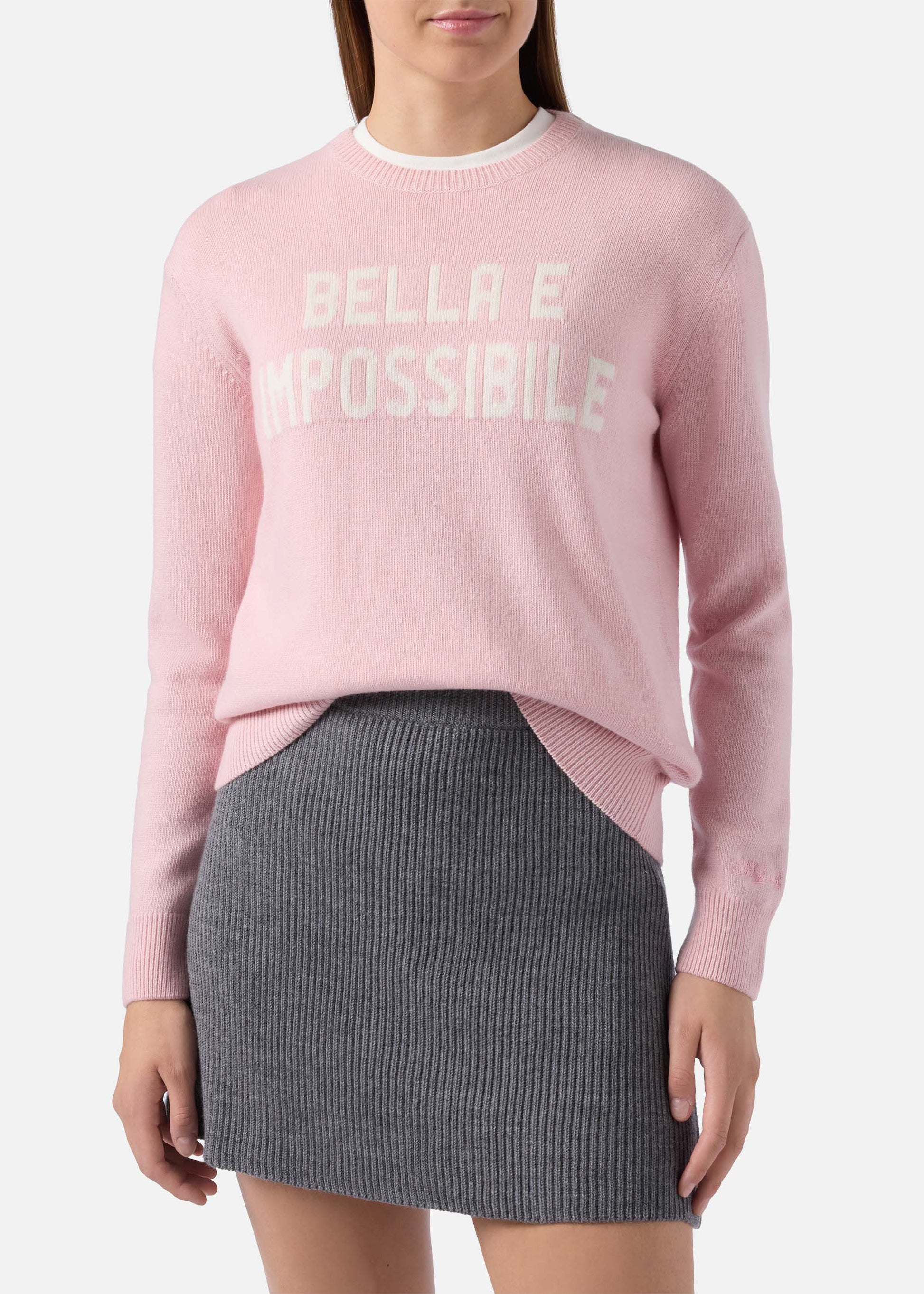 New Queen nero dice tutto in una parola: Adoro. Filato soft e lettering lurex per un black knit deciso e femminile. Maglia rasata. Girocollo. Maniche lunghe. Fondo, collo e polsi a coste. Scritta jacquard Bella e Impossibile.