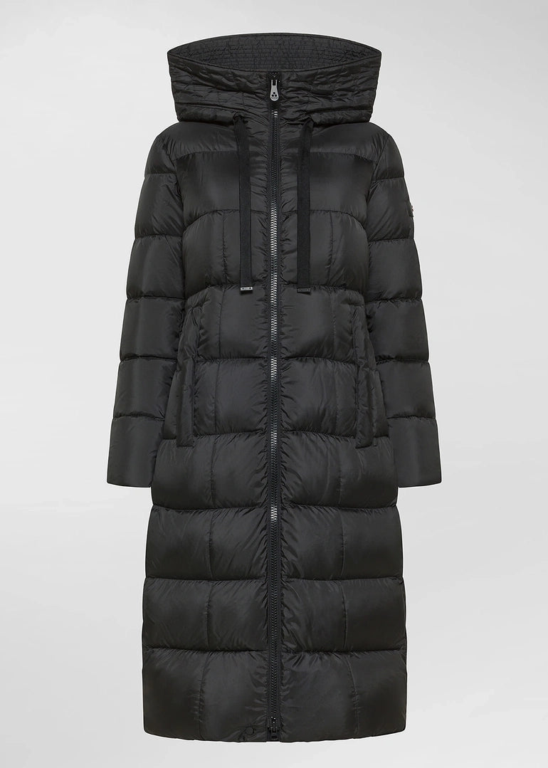 Piumino lungo ad ampie trapunte orizzontali, realizzato in tessuto super-light 100% poliestere riciclato post consumo, dalla mano morbida, finitura semi-opaca e struttura ultra compatta. L’imbottitura in piuma naturale certificata assicura un calore elevato senza appesantire. I dettagli tecnici - collo alto, cappuccio fisso regolabile, chiusura con zip a doppio cursore e ampie tasche laterali – ne esaltano la praticità. Il trattamento idrorepellente PFC Free protegge dalla pioggia leggera senza l’utilizzo di sostanze chimiche dannose. Ideale per chi apprezza la comodità senza rinunciare all’eleganza.